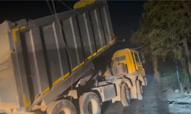 फ्लाईऐश ट्रांसपोर्ट वाहन ने तोड़ा बिजली लाइन, लोगों में नाराजगी