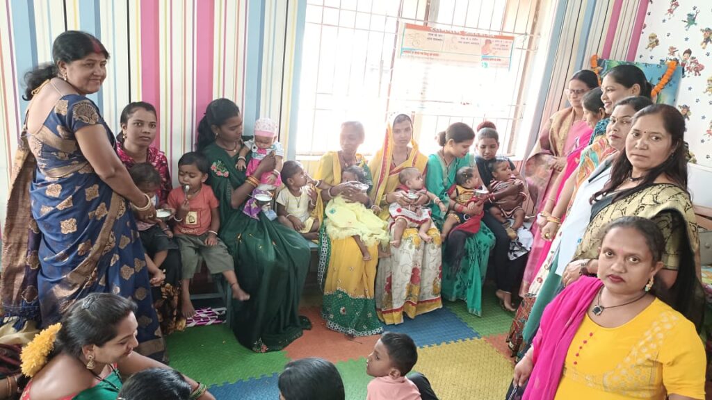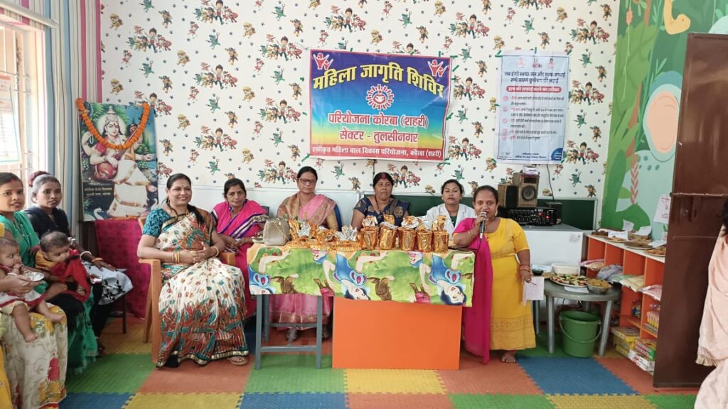 विभाग की योजनाओं के बारे में आंगनबाड़ी कार्यकर्ता रहिजा के द्वारा सभी को अवगत कराया गया। इस अवसर पर बिन्दी लगाओ एवं बॉस्केट बॉल प्रतियोगिता में उपस्थितों ने हिस्सा लिया। महिला सशक्तिकरण के बारे सेक्टर सुपरवाइजर श्रीमती कीर्ति जैन ने जानकारी देते हुए शासन की इस संबंध में क्रियान्वित की जा रही विभिन्न योजनाओं का लाभ लेने के लिए प्रेरित व जागरुक किया। अंत में सभी प्रतिभागियों को पुरस्कृत किया गया। इस अवसर पर 6 बच्चों का अन्नप्राशन्न कराया गया साथ ही गर्भवती माताओं की गोद भराई भी की गई। कार्यक्रम में तुलसीनगर-2 गेरवाघाट आंगनबाड़ी केन्द्र व तुलसीनगर सेक्टर के हितग्राही, गर्भवती व शिशुवती माताएं भी शामिल हुईं।