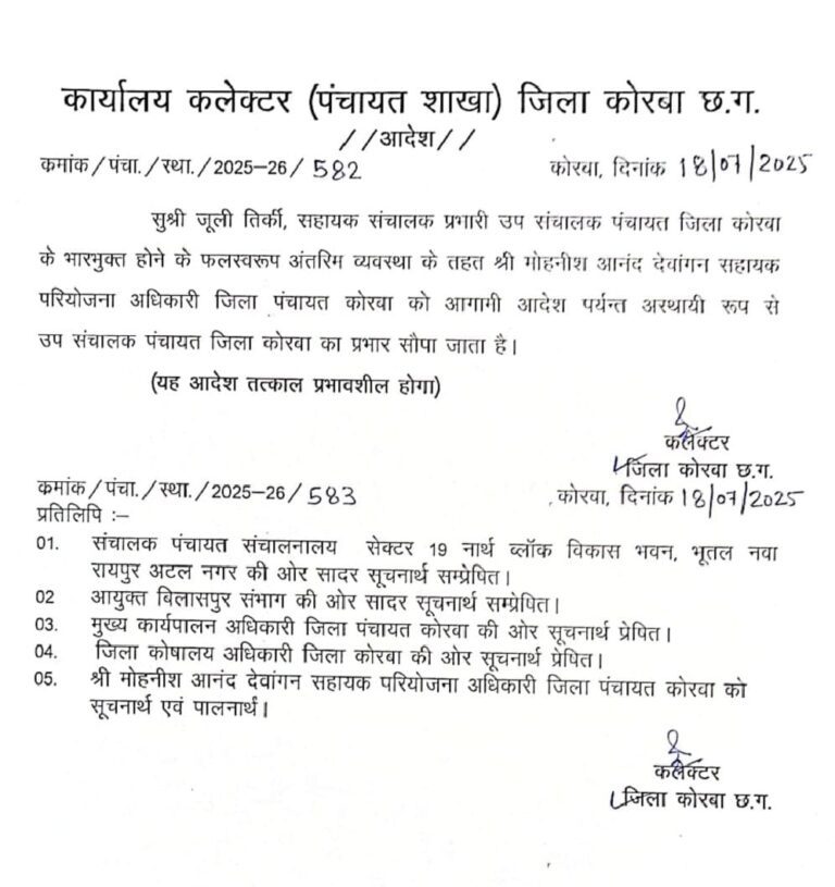 इसका ताजा उदाहरण कोरबा जिला के ग्रामीण क्षेत्रों में राजनीतिक सुशासन व्यवस्था पंचायतों में नियंत्रण करने वाले विभाग उप संचालक पंचायत के पद पर पदस्थ रहे सुश्री जुली तिर्की के स्थानान्तरण होने पर देखने को मिल रहा है। जुली तिर्की के स्थानांतरण के पश्चात इस पद पर सहायक परियोजना अधिकारी (एपीओ) मोहनीश ए देवांगन को प्रभार दे दिया गया है। इस पद पर अभी तक विभागीय अधिकारी डिप्टी कलेक्टर या प्रभार के रूप में रहे जिला पंचायत में पदस्थ परियोजना अधिकारी जिम्मेदारी निभाते रहे है। किन्तु संभवतः यह पहला अवसर होगा की सहायक परियोजना अधिकारी (एपीओ) को इस पद की जिम्मेदारी दे दिया गया है। जिससे यह प्रतीत होता है कि कहीं न कहीं कमाऊ पुत की व्यवस्था बनाई गई है।