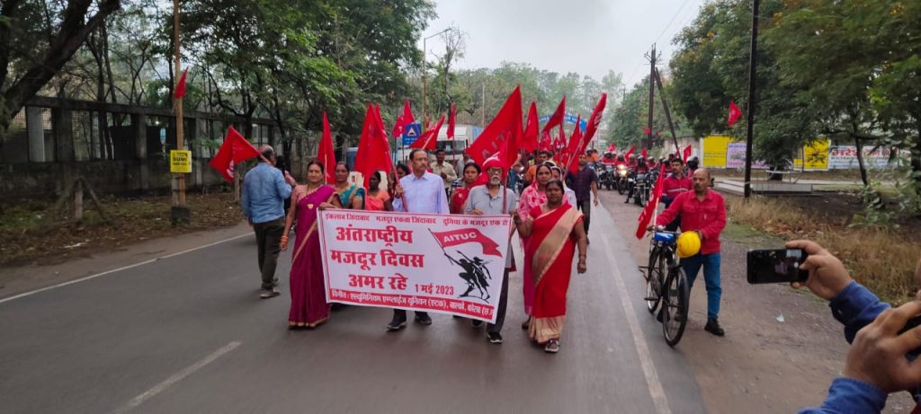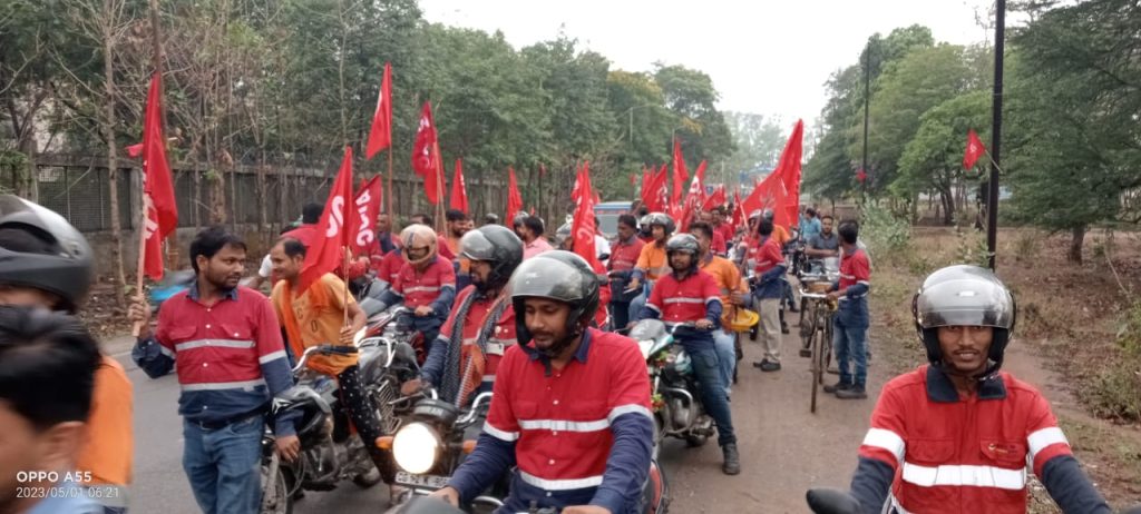 बाल्कोनगर/ एल्युमिनियम एंप्लाइज यूनियन (एटक)बाल्को में अंतर्राष्ट्रीय मजदूर दिवस पर सुबह 6:00 बजे प्रभात फेरी निकाला गया शाम को सांस्कृतिक कार्यक्रम किया गया सुबह प्रभात फेरी (एटक) कार्यालय पहुंचने पर छत्तीसगढ़ राज्य (एटक) के महासचिव कामरेड हरिनाथ सिंह ने संबोधित करते हुए कहा कि 2014 से देश के सत्ता पर काबिज मालिक परस्त सरकार के द्वारा पिछले 9 वर्षों में सर्वाधिक हमले देश के मजदूरों एवं किसानों पर किए गए हैं एक तरफ तो मजदूरों के लंबे सुधांशु एवं अनेकों बलिदानों के पश्चात प्राप्त किए गए श्रम कानूनों से कई तरह के संरक्षण एवं सामाजिक सुरक्षा मिले थे जिसको वर्तमान सरकार के द्वारा बदल कर मालिक परस्त. एवं मालिक की हितेषी फोर लेबर कोड एवं वेतन भुगतान कोड बनाकर देश के मजदूरों को कारपोरेट घराने के लिए आधुनिक गुलाम बनाने की पूरी प्रयास जारी है ।