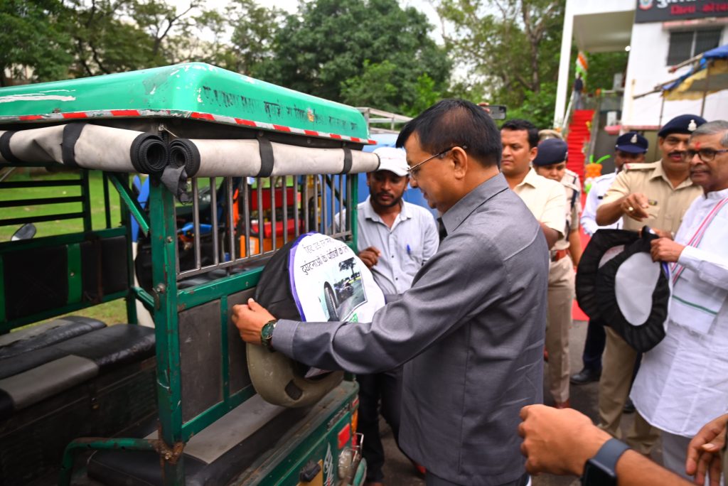 इसके पश्चात अथितियों के द्वारा ई- रिक्शा और ऑटो रिक्शा में यातायात जागरूकता संबंधी स्टेपनी कवर और पोस्टर लगा कर शुभारंभ किया। ज्ञात हो कि अब चौक चौराहों में फ्लेक्स, पोस्टर आदि लगा कर लोगों को यातायात नियमों का पालन करने के लिए जागरूक किया जायेगा।
