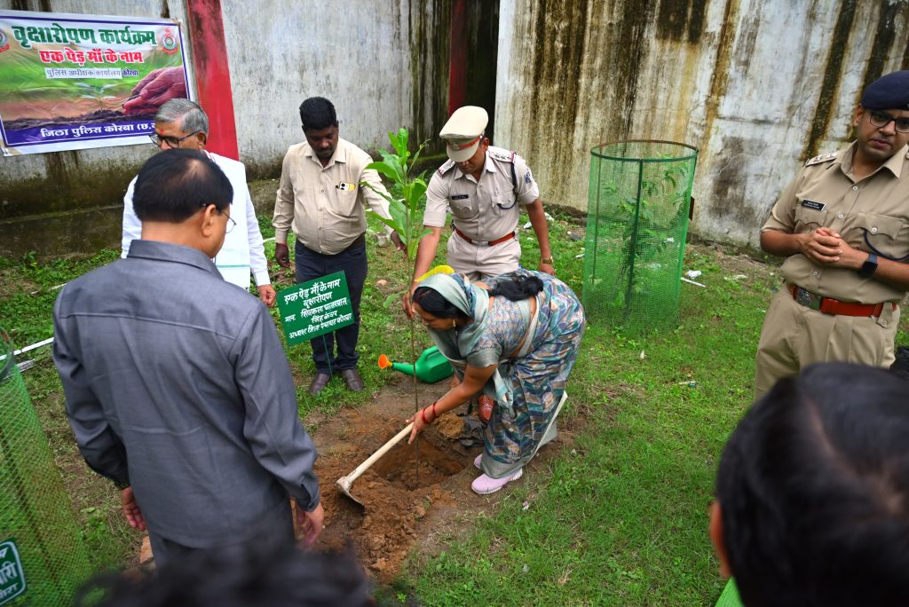 उसके बाद मुख्य अतिथियों के द्वारा पुलिस अधीक्षक कार्यालय परिसर में “एक पेड़ माँ के नाम” के तहत वृक्षारोपण किया।