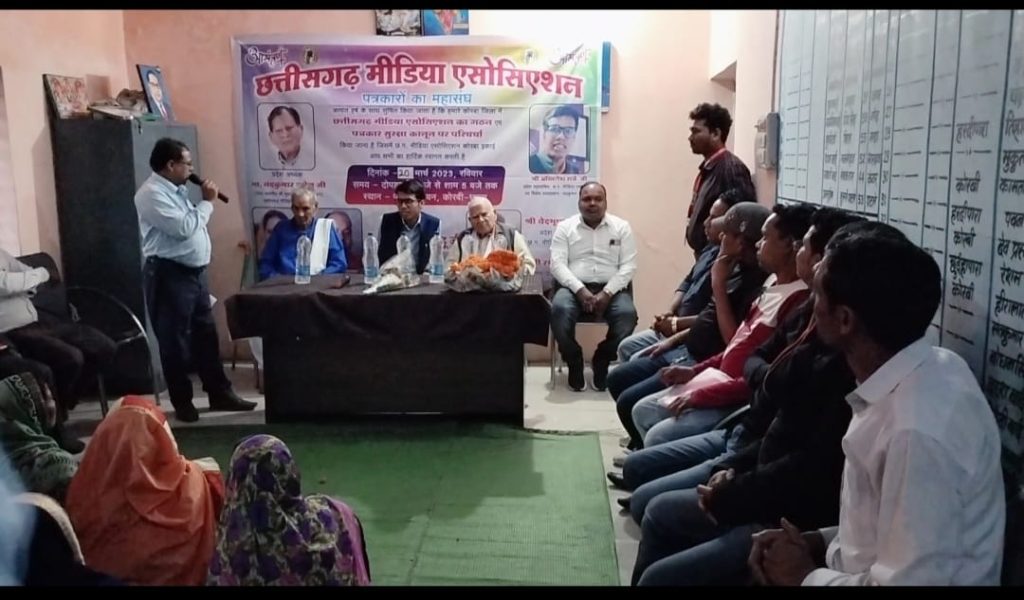 हरदी बाजार/ कोरबा/ सोमवार को कोरबा जिले के हरदी बाजार थाना क्षेत्र के अंतर्गत पडने वाली ग्राम पंचायत कोरबी (धतूरा)में छत्तीसगढ़ मीडिया एसोसिएशन के प्रदेश अध्यक्ष श्री नंद कुमार बघेल जी के द्वारा पत्रकार सुरक्षा कानून पर परिचर्चा का कार्यक्रम रखा गया था जिसमें पत्रकारों के हितों से संबंधित विभिन्न प्रकार की चर्चाएं की गई एवं छत्तीसगढ़ मीडिया एसोसिएशन कोरबा इकाई का गठन कर पत्रकारों को नियुक्ति पत्र प्रदान कर सम्मानित किया गया ।