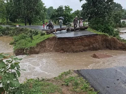 प्रधानमंत्री ग्राम सड़क योजना की पुलिया भी बहीउधर, इसी मार्ग पर प्रधानमंत्री ग्राम सड़क योजना के तहत बनी कोई-बड़मार सड़क की पुलिया भी बह गई। वर्ष 2007-08 में इस सड़क का निर्माण हुआ था, जिसमें छोटे नाले को पार करने के लिए पाइप डालकर पुलिया बनाई गई थी। शनिवार सुबह ग्रामीणों ने देखा कि पुलिया बह चुकी है। इससे कोई-बड़मार मार्ग पूरी तरह बंद हो गया है और ग्रामीणों को वैकल्पिक रास्ते से 5 किलोमीटर का अतिरिक्त चक्कर लगाकर आवाजाही करनी पड़ रही है।