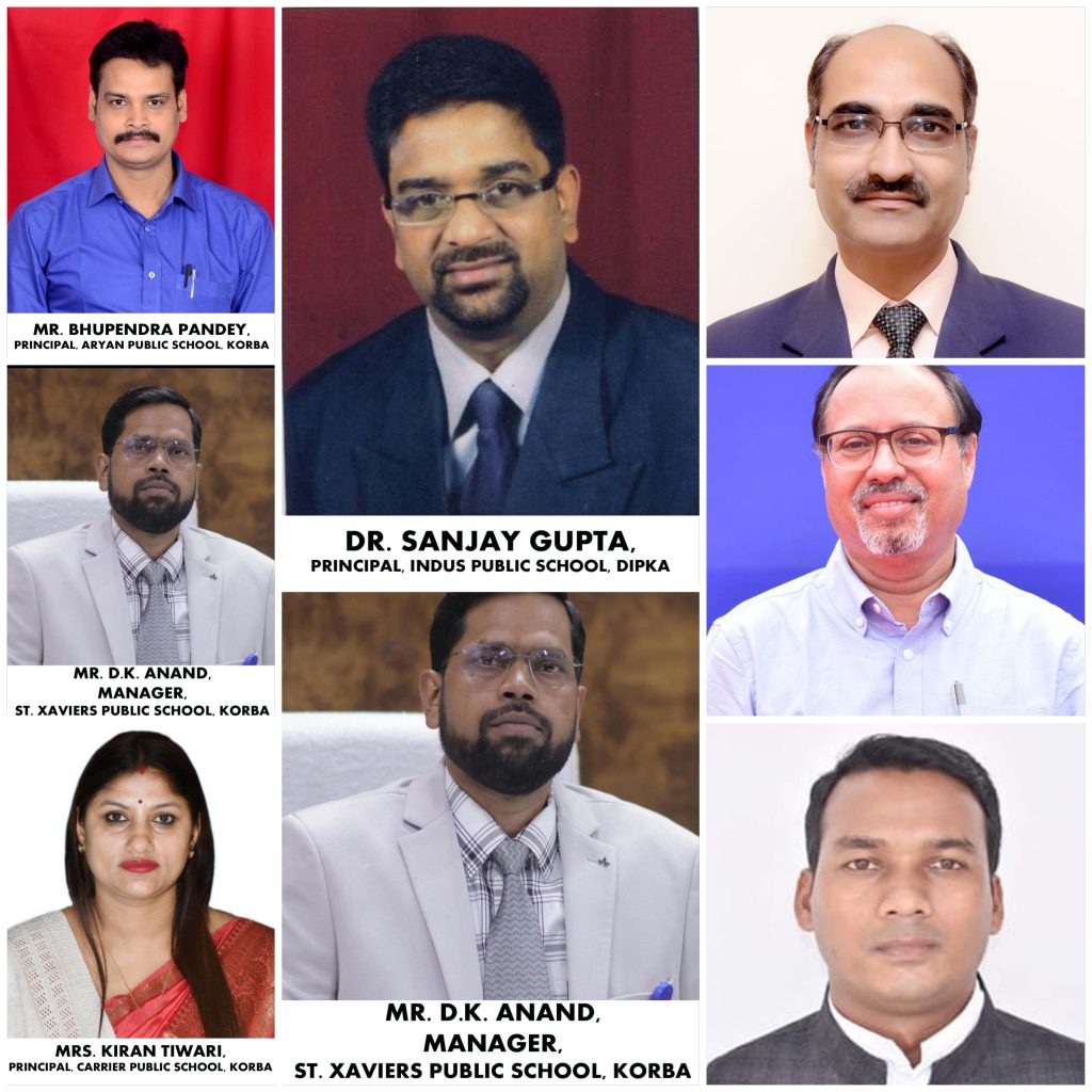 🔹 संरक्षक: श्री कैलाश पवार – प्राचार्य, डीपीएस बालको🔹 अध्यक्ष: डॉ. संजय गुप्ता – प्राचार्य, इंडस पब्लिक स्कूल दीपका🔹 सचिव: डॉ. डी. के. आनंद – प्रबंधक, सेंट ज़ेवियर्स पब्लिक स्कूल, कोरबा🔹 उपाध्यक्ष : श्रीमती किरण तिवारी – प्राचार्या, कैरियर पब्लिक स्कूल, मुड़ापार, कोरबा🔹 कोषाध्यक्ष: श्री डी. एस. राव – प्राचार्य, न्यू एरा प्रोग्रेसिव स्कूल, कोरबा🔹 सह-सचिव: श्री भूपेन्द्र पांडेय – प्राचार्य, आर्यन पब्लिक स्कूल🔹 सह-कोषाध्यक्ष: श्री संजीव खाखा – प्राचार्य, सेंट पेलोटी स्कूल, कोरबा