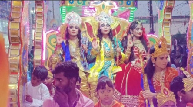 शोभायात्रा में श्री राम दरबार की जीवंत झांकियों सहित बस्तर नाचा, बैंड बाजा, राउत नाचा मुंगेली, कठपुतली शो बिलासपुर, घंटा बाजा ओडिशा, मावली ढोल महाराष्ट्र, लाइव देव झांकी, गौरी कृपा धुमाल दुर्ग, डमरू बाजा उज्जैन, थैयम झांकी तमिलनाडू, ढ़ाक बाजा बंगाल, प्रतिमा झांकी कोलकाता, घोड़े की झांकी खडग़पुर, दुलदुल घोड़ा मध्यप्रदेश, दिलेर खालसा ग्रुप पंजाब, चेंडा, मेलम बाजा केरल, बाहुबली शिवजी झांकी, बाहुबली बजरंग बली जी की झांकी, डीजे पावर जोन राजनांदगांव, वृंदावन मथुरा झांकी उत्तर प्रदेश, विश्व प्रसिद्ध श्याम बैंड जबलपुर, विश्व प्रसिद्ध रामू राजस्थानी महा झांकी के अलावा लाइटिंग डीजे नागपुर ढोल, डीजे, कीर्तन मंडली, विभिन्न प्रकार की झांकियां आकर्षण का मुख्य केंद्र रही । देश के सबसे बड़े आयोजन को देखने के लिए हजारों हजार की संख्या में लोग उपस्थित रहे । संगीत की धुन पर युवाओं की टोलियों ने जमकर नृत्य का आनंद उठाया ।
