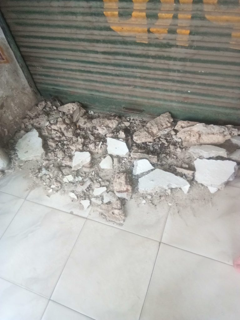 गीतांजलि भवन के दुकान का छज्जा गिरा संचालक फिर बाल-बाल बचा