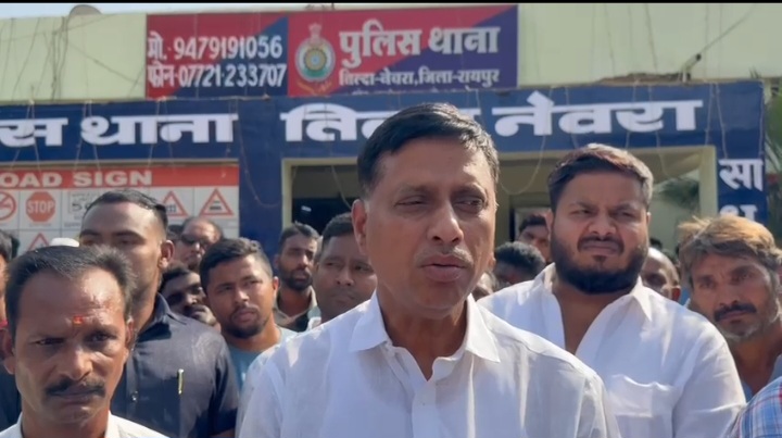 तिल्दा/नेवरा/ छत्तीसगढ़ में नगरीय निकाय और पंचायत चुनाव एक साथ करवाए जा रहे हैं। जिसके चलते शहर और गांवों में गदर मची हुई है। इसी परिपेक्ष्य में तिल्दा ब्लॉक में पंचायत चुनाव को लेकर एक बड़ी घटना सामने आई है। जिसमें एक भाजपा विधायक पर आरोप है कि, दबावपूर्वक उन्होंने नेवरा थाना में एक एफआईआर दर्ज करवा दी है। जिसके बाद बड़ी संख्या में नेवरा थाना पहुंचे ग्रामीणों ने आरंग विधायक मुर्दाबाद के नारे भी लगाए।
