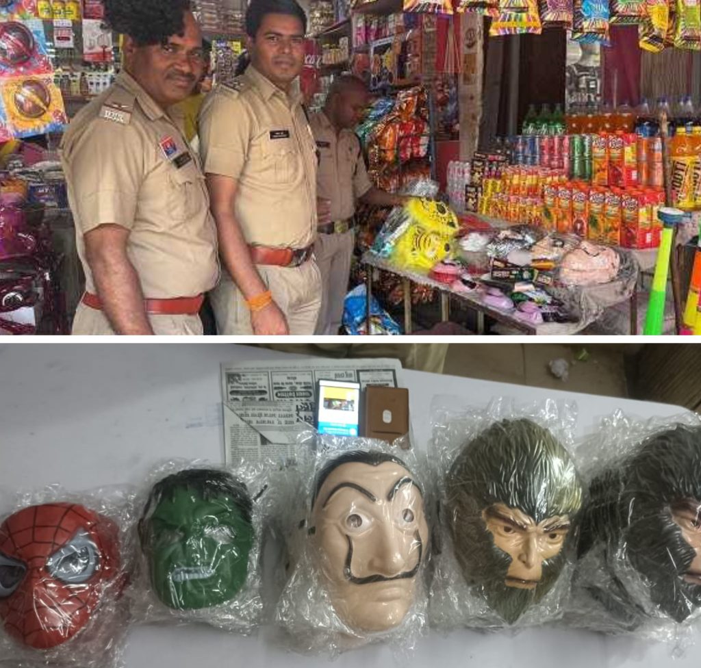 छत्तीसगढ़:- मुखौटे बेचने वालों पर कोरबा पुलिस की कार्रवाई – 30 दुकानदारों से 3000 से अधिक मुखौटे जप्त