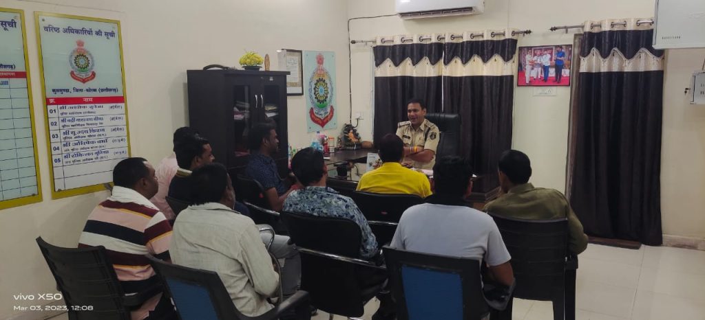 कोरबा / पुलिस अधीक्षक उदय किरण ने होली पर्व सौहार्द्र और भाईचारे के साथ मनाने को लेकर शांति समिति की बैठक लेने के निर्देश थाना-चौकी प्रभारियों को दिये थे। ज़िले के सभी अधिकारी एवम् थाना-चौकी प्रभारियों ने क्षेत्र के कार्यपालिक दण्डाधिकारी की मौजूदगी में जनप्रतिनिधि, गणमान्य नागरिकों की मौजूदगी में होली पर्व आपसी भाईचारा को कायम रखते हुए सौहार्दपूर्ण वातावरण में मनाने अपील की ।