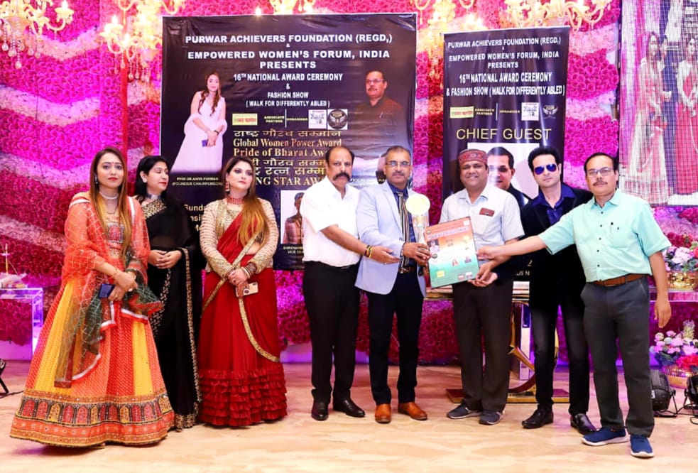 दिल्ली के मैजेस्टिक क्राउन में पुरवार एचीवर्स फाउंडेशन दिल्ली और एमपावरड वूमेन फोरम इंडिया के संयुक्त तत्वाधान में 16 वें नेशनल अवार्ड समारोह का आयोजन किया गया। समारोह में देश के विभिन्न राज्यों से आयी राजनैतिक, सामाजिक, शैक्षिक, कला, सिंगिंग, डांसिंग, फिल्म एवं मॉंडलिंग जगत से जुडी जानी-मानी हस्तियों ने शिरकत की। समारोह में नेशनल अवार्डी व गोल्ड मेडलिस्ट पत्रकार विपुल जैन बागपत को पत्रकारिता एवं सामाजिक क्षेत्र में महत्वपूर्ण भूमिका अदा करने के लिए प्राइड ऑफ भारत अवार्ड से अलंकृत किया गया। पुरवार एचीवर्स फाउंडेशन दिल्ली के संस्थापक व चेयरपर्सन प्रोफेसर डाक्टर अनिता पुरवार व प्रोफेसर डाक्टर मनोज पुरवार ने बताया कि विपुल जैन एक वरिष्ठ पत्रकार और जैन ब्रदर्स न्यूज नेटवर्क के चेयरपर्सन है। बताया कि विपुल जैन को समाज में छुपी हुई प्रतिभाओं को खोज कर उनको देश व दुनिया के सामने प्रस्तुत करने, समाज के कमजोर वर्ग की आवाज को बुलंद करने व उनको न्याय दिलाने, लोगों की समस्याओं को शासन-प्रशासन तक पहुॅंचाने, विभिन्न धर्मो के बीच आपसी भाईचारा बढ़ाने, समाजसेवा, खोजी व बेहतरीन पत्रकारिता के लिए पुरस्कृत व सम्मानित किया गया है। विपुल जैन ने अपनी इस उपलब्धि का श्रेय अपने माता-पिता, गुरूओं, शुभचिंतको व सहयोगियों को दिया। इस अवसर पर दिल्ली बीजेपी के प्रदेश उपाध्यक्ष राजन तिवारी, डीज्वैल इंडिया के चेयरमैन पी शर्मा, बॉलीवुड एक्टर रोनी शाह, पुरवार अचीवर्स फाउंडेशन दिल्ली के वाइस चेयरमैन श्रेयांश पुरवार, ब्रांड एंबेसडर श्रेया पुरवार सहित सैंकडों लोग उपस्थित थे।