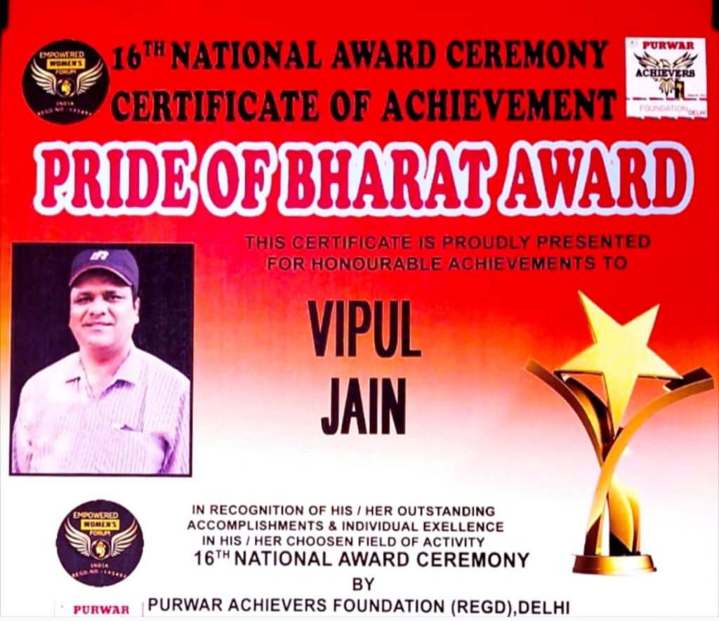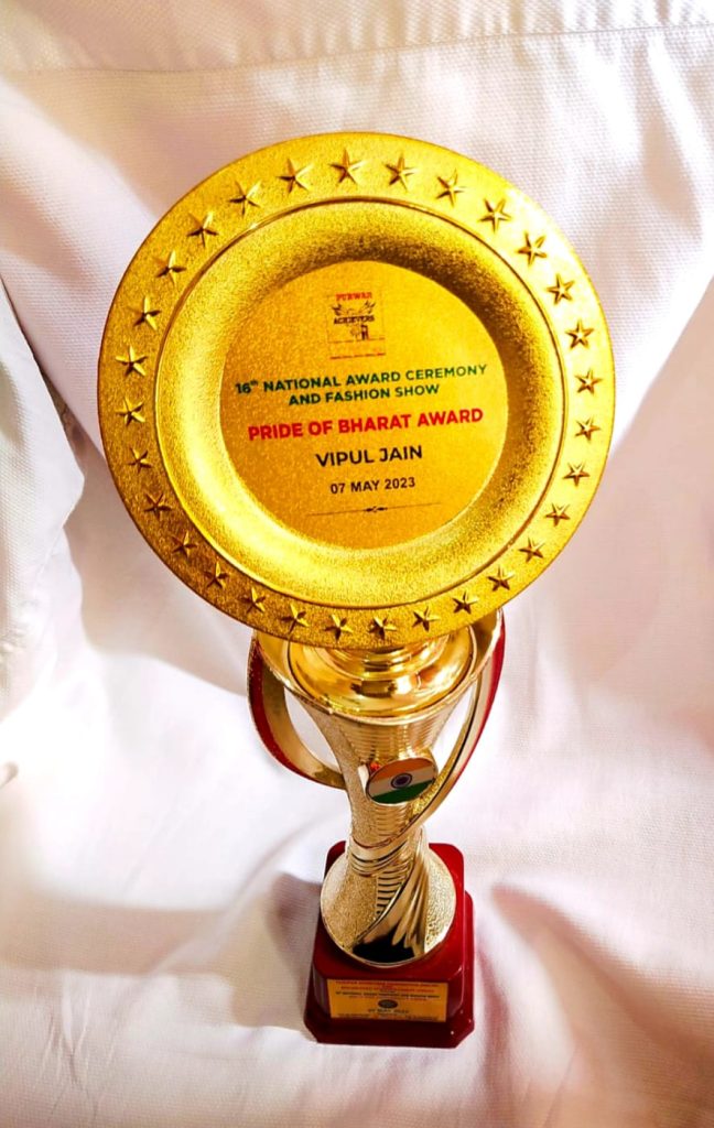 नेशनल अवार्ड समारोह में बागपत के विपुल जैन को मिला प्राईड ऑफ भारत अवार्ड