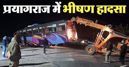 कोरबा/ प्रयागराज। उत्तर प्रदेश के प्रयागराज जिले में बड़ा सड़क हादसा हुआ है। हादसे में दस श्रद्धालुओं की मौत हो गई है। जबकि 19 घायल हो गए हैं। सूचना मिलते ही पुलिस मौके पर पहुंची। पुलिस ने शवों को कब्जे में ले लिया है। साथ ही घायलों को अस्पताल में भर्ती कराया गया है।  जानकारी के अनुसार, मेजा में प्रयागराज-मिर्जापुर हाईवे पर शुक्रवार देर रात हुए भीषण सड़क हादसा हुआ। हादसे में 10 श्रद्धालुओं की मौत हो गई। श्रद्धालुओं से भरी बोलेरो और बस में आमने-सामने की टक्कर हुई है।
