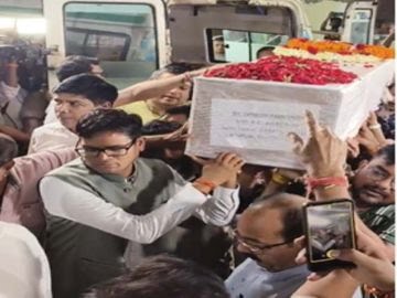 रायपुर एयरपोर्ट पर डिप्टी सीएम अरुण साव, मंत्री ओपी चौधरी, टंकराम वर्मा समेत कई नेताओं ने श्रद्धांजलि दी।