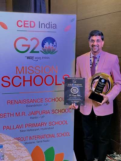 उपर्युक्त सभी बातों के मद्दे नजर अपनी काबिलियत का लोहा मनवाते हुए इंडस पब्लिक स्कूल दीपका के प्राचार्य डॉक्टर संजय गुप्ता को शिक्षा भूषण पुरस्कार से सीई डी इंडिया फाउंडेशन के द्वारा होटल रेडिसन उद्योग विहार गुड़गांव में विभिन्न नामचीन हस्तियों की मौजूदगी में एक गरिमामायी सम्मान समारोह में सम्मानित किया गया ।यह उपलब्धि न सिर्फ विद्यालय के लिए बल्कि समस्त कोयलांचल हेतु गौरवशाली है। शिक्षा भूषण पुरस्कार में आमंत्रित शिक्षाविदों के मध्य एनसीएफ इंप्लीमेंटेशन फॉर ऑल सस्टेनेबल फ्यूचर थीम पर विचार विमर्श किया गया ।डॉक्टर संजय गुप्ता प्राचार्य इंडस पब्लिक स्कूल ने एन सीएफ इंप्लीमेंटेशन फॉर ऑल सस्टेनेबल फ्यूचर थीम पर अपने प्रेरक विचार विभिन्न नामचीन शिक्षाविदों के मध्य व्यक्त किया। एनसीएफ पर शिक्षा से संबंधित उनके विचार सुनकर सभी प्रसन्नचित होकर निरंतर करतल ध्वनि करते रहे। उनके नवाचारों से परिपूर्ण शिक्षा व शिक्षक से संबंधित विचारों का सबने एक स्वर में समर्थन किया। यहां यह बताना अति आवश्यक है कि इस गरिमामयी समारोह में प्रोफेसर एम एम पंत (फार्मर प्रो वाइस चांसलर इग्नू ),मिस अनुभूति मेहता (फार्मर असिस्टेंट कमिश्नर केवीएस), अनुराग कुमार सिंह (अंडर सेक्रेटरी रीजनल ऑफिस सीबीएसई प्रयागराज), राजीव पांडे (अंडर सेक्रेटरी सीबीएसई न्यू दिल्ली ),डॉक्टर प्रियदर्शी नायक (अध्यक्ष सी ई डी ग्रुप) उपस्थित थे। शिक्षा भूषण पुरस्कार हेतु पूरे भारतवर्ष से 28 राज्यों में से 100 सिर्फ शिक्षाविदों को इस महत्वपूर्ण सम्मान हेतु आमंत्रित किया गया था जिसमें इंडस पब्लिक स्कूल दीपका के डॉक्टर संजय गुप्ता का भी नाम प्रमुख रूप से शामिल था। शिक्षा के क्षेत्र में अभिनव पहल करने हेतु डॉक्टर संजय गुप्ता को शिक्षा भूषण पुरस्कार से नवाजा गया। सीडी इंडिया जो कि शिक्षा व शिक्षण के क्षेत्र में अभिनव पहल करने वाले व महत्वपूर्ण कार्य करने वाले शिक्षाविदों को सम्मानित करने वाली एक संस्था है, के द्वारा टीचर कॉन्फ्रेंस का यह 9 वा संस्करण गुड़गांव के होटल रेडिसन में आयोजित किया गया ।जिसमें डॉक्टर संजय गुप्ता प्राचार्य ,इंडस पब्लिक स्कूल विशेष आमंत्रित शिक्षाविदों में शामिल थे। इस परिचर्चा में सीएफ 2023 वह नप 2020 विषय पर गहन विस्तृत चर्चा की गई नेशनल करिकुलम फ्रेमवर्क 2023 विषय पर डॉ संजय गुप्ता ने अपने प्रेरक सुझाव प्रस्तुत किया उनके सुझावों का सभी शिक्षाविदों ने एक स्वर में समर्थन किया। डॉ संजय गुप्ता ने शिक्षा व शिक्षक से संबंधित विभिन्न नवाचार प्रस्तुत किया उन्होंने शिक्षाविदों के मध्य अपने विचार व्यक्त करते हुए कहा कि आज की शिक्षा में हमें आध्यात्मिकता ,नैतिकता व वैज्ञानिकता का समावेश शिक्षा में 