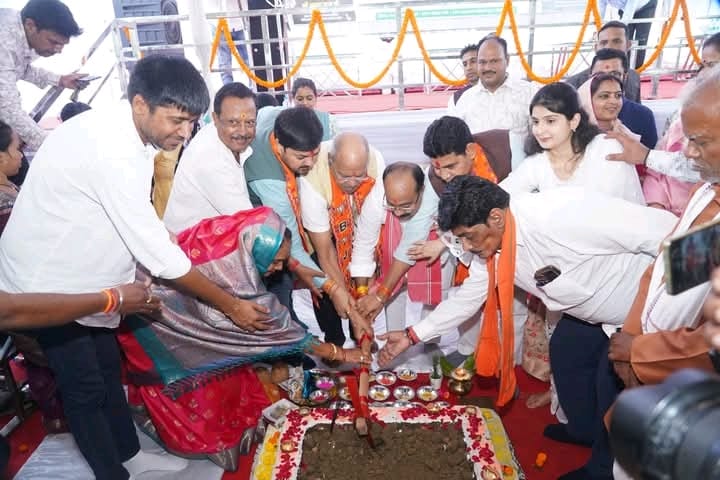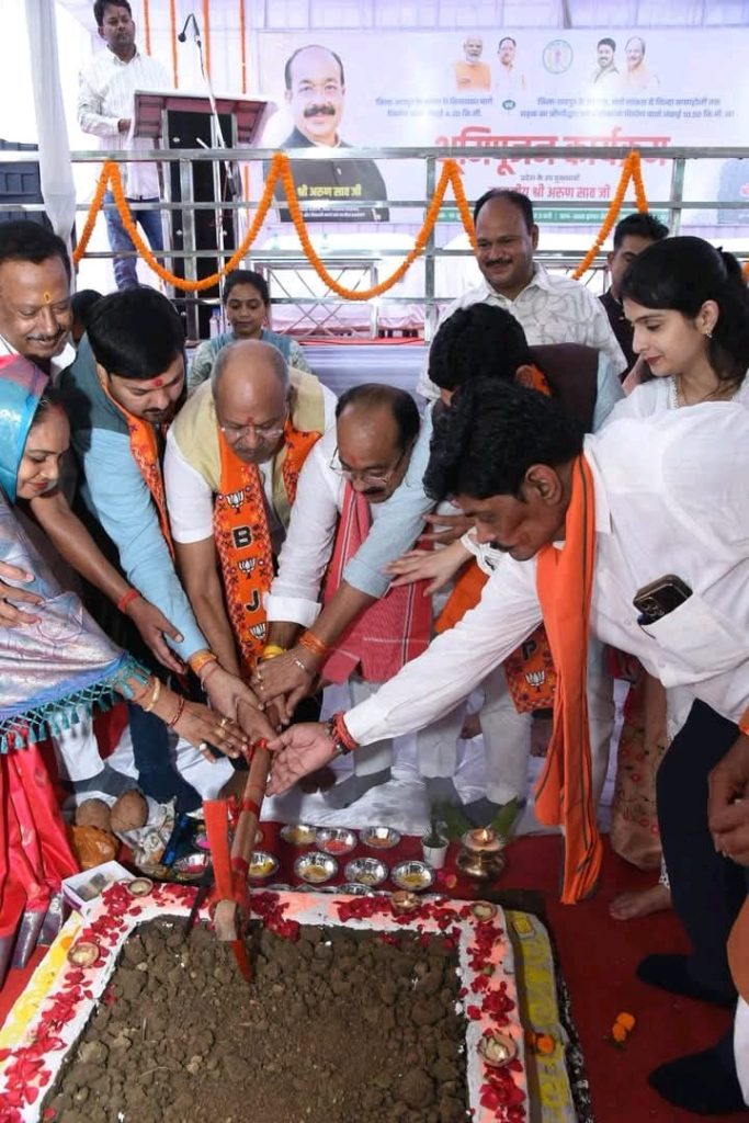 तिल्दा नेवरा के बी एन बी प्रांगड़ में लगभग 36 करोड़ की सड़क निर्माण की उपमुख्यमंत्री अरूण साव , सांसद बृजमोहन अग्रवाल,मंत्री टंक राम वर्मा, के उपस्थिति में भूमिपूजन किया गया