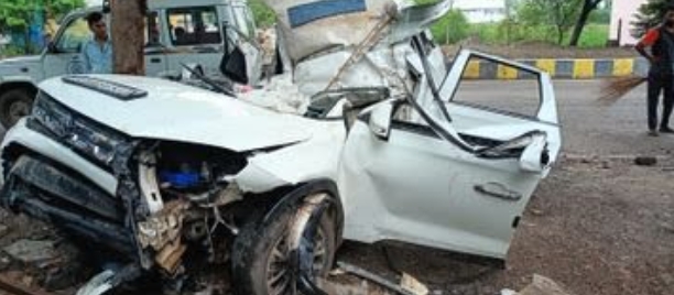 हादसे में कार बुरी तरह से क्षतिग्रस्त हो गई।