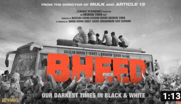अनुभव सिन्हा ने मोस्ट अवेटेड फिल्म भीड़ का ट्रेलर रिलीज कर दिया है। फिल्म में राजकुमार राव, भूमि पेडनेकर, दीया मिर्जा, पंकज कपूर, आशुतोष राणा, कृतिका कामरा, वीरेंद्र सक्सेना और आदित्य श्रीवास्तव जैसे मंझे हुए कलाकारों को लिया गया है। सबसे पहले रात के 12 से पूरे देश में…. के साथ ट्रेलर शुरू होता है। जिसमें लॉकडाउन की परिस्थिति से अवगत कराया जाता है। पूरे कोरोनाकाल की घटना इस मूवी में दिखाई गई है।