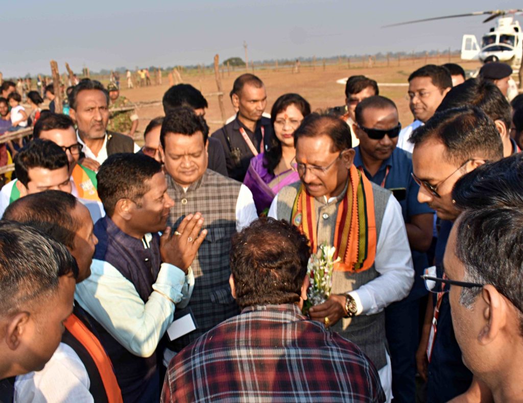 मुख्यमंत्री विष्णुदेव साय का हेलीपैड आगमन पर हुआ आत्मीय स्वागत व अभिनंदन