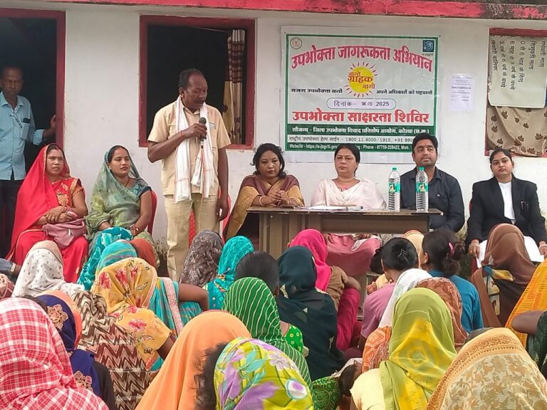 कोरबा ब्लॉक के ग्राम दोंदरो में जिला उपभोक्ता विवाद प्रतितोष आयोग ने उपभोक्ता जागरूकता शिविर का किया आयोजनकोरबा 03 अक्टूबर 2025/उपभोक्ताओं को अनुचित व्यापार व्यवहार, धोखाधड़ी, शोषण से बचाने एवं उनके अधिकारों के प्रति जागरूक करने के लिए जिला उपभोक्ता विवाद प्रतितोष आयोग ने कोरबा ब्लॉक के ग्राम दोंदरो में उपभोक्ता जागरूकता शिविर का आयोजन किया। इस दौरान आयोग की अध्यक्षा रंजना दत्ता, सदस्यगण ममता दास एवं पंकज कुमार देवड़ा ने ग्रामीणों को उपभोक्ता अधिकारों से अवगत कराया।छत्तीसगढ़ राज्य उपभोक्ता आयोग के निर्देशानुसार कोरबा जिला उपभोक्ता आयोग द्वारा प्रत्येक माह ग्रामीण क्षेत्रों में उपभोक्ता जागरूकता शिविर का आयोजन किया जा रहा है। इसी क्रम में सितम्बर माह में कोरबा विकासखण्ड के ग्राम दोंदरो में उपभोक्ता जागरूकता शिविर का आयोजन किया गया, जिसमें आयोग की अध्यक्षा श्रीमती रंजना दत्ता, सदस्यगण सुश्री ममता दास एवं पंकज कुमार देवड़ा ने ग्रामीणों को संबोधित करते हुए ई-फाइलिंग, ई-हियरिंग सहित उपभोक्ता कानूनों से अवगत कराया। उन्होंने बताया कि अब उपभोक्ता घर बैठे ही ई-फाइलिंग एवं ई-हियरिंग के माध्यम से शिकायत दर्ज कर अपना पक्ष रख सकते हैं। शिविर में उपभोक्ताओं को शुल्क अनुचित व्यापार प्रथा सहित बैंक, बीमा, फसल बीमा, बैंक फ्रॉड, फायनेंस आनलाइन खरीददारी सहित अन्य क्षेत्रों के संबंध में उपभोक्ताओं को शासन द्वारा दिए गए अधिकार के संबंध में विस्तृत रूप से जानकारी प्रदान की गई। शिविर के दौरान अधिवक्ता संगीता चौहान एवं आयोग के डाटा एण्ट्री ऑपरेटर मनीराम श्रीवास द्वारा भी उपभोक्ता कानूनों के संबंध में जानकारी दी। गांव के सरपंच बंधन सिंह कंवर व अन्य नागरिकों द्वारा भी ग्रामीणों से उपभोक्ता आयोग द्वारा आयोजित शिविर का लाभ उठाने की अपील की। इस अवसर पर आयोग के कर्मचारीगण संजय शर्मा, राजेश्वर इंग्ले, नूतन राजपूत, गांव के पंच, मितानिन, जनपद सदस्य, कोटवार, वरिष्ठ नागरिक, बालकों थाना में पदस्थ पुलिस कर्मी सहित सैकड़ों महिलाएं व आम नागरिक उपस्थित रहे। इस दौरान ग्रामीणों द्वारा उपभोक्ता कानून ई हियरिंग, ई फाइलिंग से संबंधित पूछे गए प्रश्रों का उत्तर देकर उनकी जिज्ञासाओं का समाधान भी किया गया।