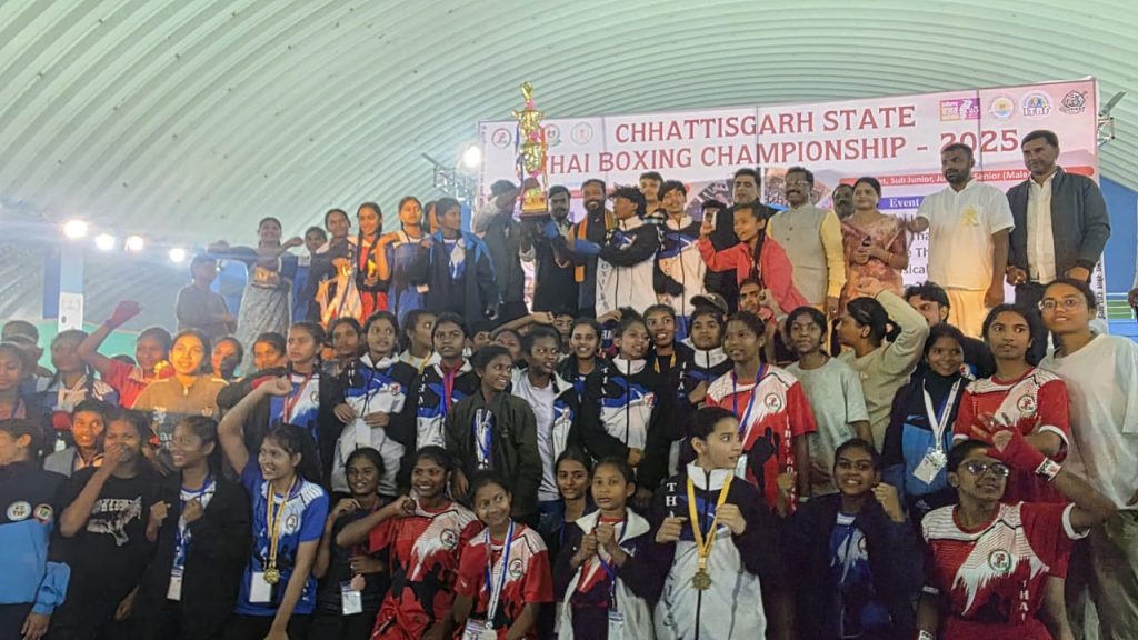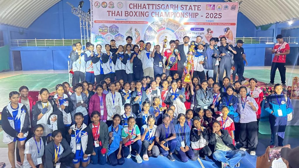 बिलासपुर – जिला प्रशासन खेल एवं युवा कल्याण विभाग एवं थाई बॉक्सिंग संघ के संयुक्त तत्वाधान में राज्य स्तरीय थाई बॉकि्ंसग प्रतियोगिता का आयोजन जिला दन्तेवाड़ा के इंडोर स्टेडियम दन्तेवाड़ा में आयोजित किया गया था।मुख्य संचालन छत्तीसगढ़ थाई बॉक्सिंग एसोसिएशन द्वारा और होस्टिंग व संपूर्ण मैनेजमेंट दन्तेवाड़ा थाई बॉक्सिंग एसोसिएशन द्वारा किया गया। कार्यक्रम को जिला प्रशासन एवं जनपद पंचायत दन्तेवाड़ा का विशेष सहयोग प्राप्त हुआ,