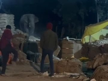 कोरबा: धान खरीदी केंद्र में घुसा हाथी, कर्मचारियों में अफरा-तफरी, वन विभाग ने जंगल की ओर खदेड़ा