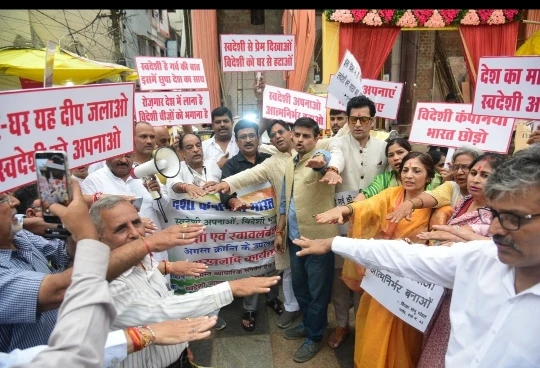 आत्मनिर्भरता की दिशा में आगे बढ़ने का सुनहरा अवसर : भोपाल में विदेशी कंपनियों भारत छोड़ो, अमेरिका के टैरिफ का कड़ा विरोध — न्यू मार्केट में जनजागरण रैली, स्वदेशी अपनाने का