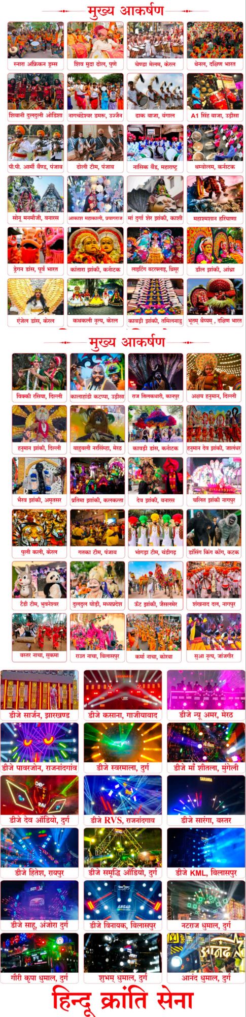 ऊर्जाधानी में गौरवशाली लोक परम्पराओं को रेखांकित करती झांकियां भी देखने को मिलेंगी। अनेक जिले के डीजे धुमाल में भक्ति गीतों पर जहां युवा थिरकेंगे वहीं लोक नृत्य करमा के मांदर की थाप लोगों को झूमने पर विवश कर देगी।