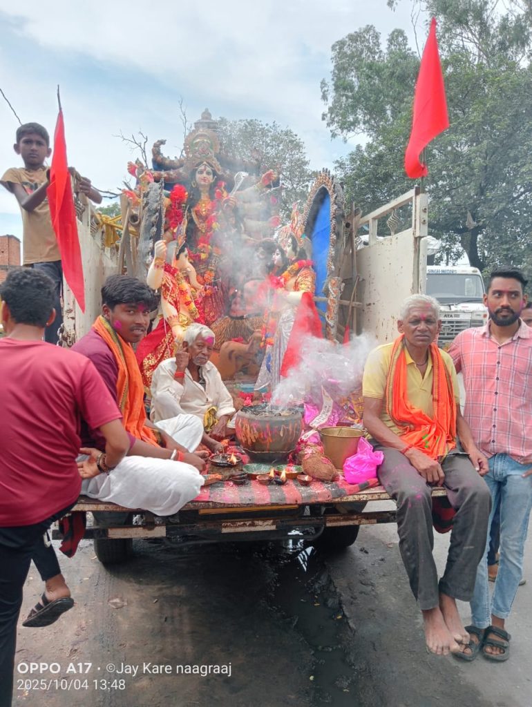 मां दुर्गा की विदाई देखने गांव की गलियों पर श्रद्धालु उमड़ पड़े थे।इस अवसर पर ग्रामवासी बड़ी संख्या मौजूद रहे।।