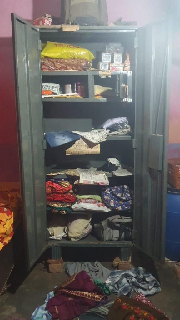 शाम करीब 5 से 6 बजे उन्हें सूचना मिली कि उनके घर की अलमारी टूटी हुई है। तत्काल ग्राम बिनैका पहुँचने पर उन्होंने देखा कि अलमारी के कपड़े और सामान पूरी तरह बिखरे पड़े थे। अलमारी में रखा पर्स भी गायब था।