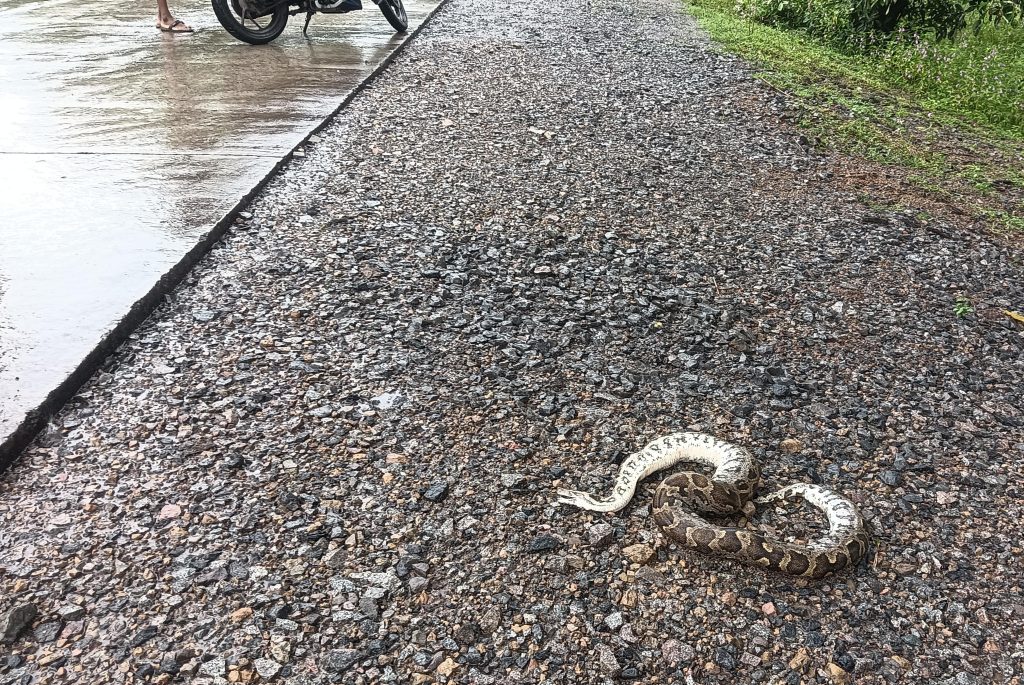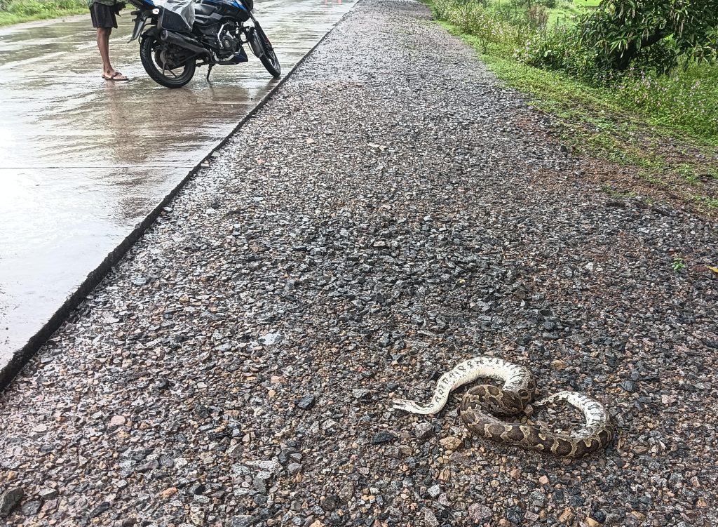 धौराभाठा के पास सड़क पर अजगर की मौत,प्रशासन की लापरवाही से ग्रामीणों में आक्रोश