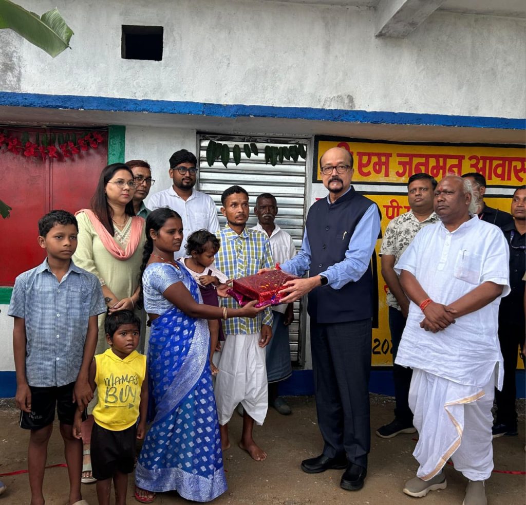 राज्यपाल श्री रमेन डेका ने आज बलरामपुर-रामानुजगंज जिले के विकासखंड राजपुर के पहाड़ी कोरवा ग्राम घटगांव में प्रधानमंत्री जनमन आवास योजना के हितग्राही श्री रामकुमार के घर पहुँचकर उन्हें उनके नए आवास की चाबी सौंपी। राज्यपाल ने फीता काटकर नवनिर्मित आवास में गृह प्रवेश कराया। उन्होंने परिवार के सदस्यों को उनके नए आवास एवं उज्जवल भविष्य के लिए बधाई एवं शुभकामनाएं दीं। राज्यपाल श्री रमेन डेका ने हितग्राही श्री रामकुमार और उनके परिवार से आत्मीयता से बातचीत की। उन्होंने परिवार की आजीविका, बच्चों की पढ़ाई और योजना से हुए बदलावों के बारे में जानकारी ली। इस दौरान रामकुमार ने बताया कि पहले वे कच्चे घर में डर में रहते थे लेकिन अब योजना अंतर्गत मिले आवास से अपने पक्के घर में सुकून से बेफिक्र होकर सो पाएंगे। राज्यपाल श्री रमेन डेका ने पहाड़ी कोरवा परिवार से विदा लेते समय उनको उपहार भेंट किया और आगे बेहतर जीवन के लिए शुभकामनाएं दी।