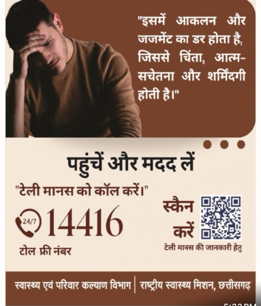 रायपुर : ‘उम्मीद’ एवं ‘मनोदर्पण’ आधारित मानसिक स्वास्थ्य नीति होगी लागू
