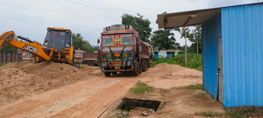 ।बीजापुर – जिले के तारलागुड़ा थाना क्षेत्र में रविवार को राजस्व अमले ने रेत कारोबारियों पर शिकंजा कसते हुए बड़ी कार्रवाई की। तहसीलदार लक्ष्मण राठिया के नेतृत्व में हुई कार्रवाई में तेलंगाना की ओर जा रहे रेत से भरे 14 ट्रकों को पकड़कर थाने के सुपुर्द किया गया।जानकारी के मुताबिक, जब्त सभी ट्रक तेलंगाना के कारोबारियों की हैं। ट्रकों को जीएसटी में गड़बड़ी, भंडारण और बिना अनुमति के बनाए गए अवैध धर्मकांटे से रेत तोलने के चलते रोका गया। तहसीलदार ने पूरे मामले की रिपोर्ट तैयार कर आगे की कार्रवाई के लिए एसडीएम कार्यालय भोपालपटनम भेज दी है।इस दौरान तारलागुड़ा स्थित अवैध धर्मकांटे को भी सील कर दिया गया। बताया जा रहा है कि उक्त धर्मकांटा शासकीय भूमि पर कब्जा कर बनाया गया था। पूर्व में भी इसे सील किया गया था, लेकिन संचालक ने ताला तोड़कर दोबारा संचालन शुरू कर दिया था।कार्रवाई के असर से तिमेड़, भद्रकाली और चंदूर के खदानों में खलबली मच गई। कई ट्रक चालक पकड़े जाने के डर से खदान में ही रेत खाली कर लौटते नजर आए।स्थानीय ग्रामीणों का कहना है कि रेत का अवैध कारोबार लंबे समय से ठेकेदारों और रसूखदारों की शह पर फल- फूल रहा था। राजस्व विभाग की इस कार्रवाई के बाद अब देखना होगा कि प्रशासन ठेकेदारों पर सक्ति बरतता है या नहीं।