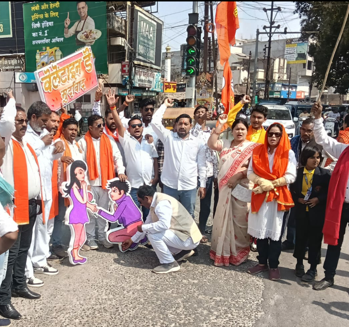 बिलासपुर/ शिव सेना द्वारा बाइक रैली निकाल कर वैलेंटाइन डे का किया पुतला दहन शिवसेना प्रदेश प्रमुख धनंजय सिंह परिहार के निर्देशानुसार प्रदेश महासचिव सुनील कुमार झा के मार्गदर्शन में संभाग कार्यालय बिलासपुर से पाश्चात्य सभ्यता (वेलेंटाइन डे) के विरोध में गोल बाजार से गांधी चौक होते हुए दो पहिया वाहन रैली निकालकर देवकीनंदन चौक में पुतला दहन किया गया। जिला मीडिया प्रभारी रोमेश शर्मा ने बताया की भारत में वैलेंटाइन डे (14 फरवरी) का विरोध मुख्य रूप से शिवसेना द्वारा भारतीय संस्कृति के संरक्षण के साथ पश्चिमीकरण का विरोध और सार्वजनिक अश्लीलता के खिलाफ विरोध के प्रमुख कारण है। सांस्कृतिक मूल्यों को बचाना,पाश्चात्य संस्कृति का अंधानुकरण रोकना और सार्वजनिक स्थानों पर प्रेमी जोड़ों की अश्लील गतिविधियों को रोकना है।