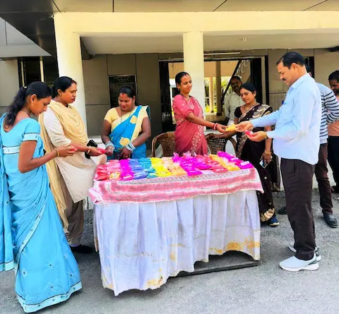 नैना और प्रगति स्व-सहायता समूह की महिलाओं ने लगाया हर्बल गुलाल का स्टॉलजांजगीर-चांपा, 3 मार्च 2026/ कलेक्टर जन्मेजय महोबे के निर्देशन एवं जिला पंचायत सीईओ गोकुल रावटे के मार्गदर्शन में हर्बल गुलाल को बढ़ावा देने के उद्देश्य से समूह की महिलाओं के लिए कलेक्टोरेट एवं जिला पंचायत परिसर में स्टॉल लगाया गया। इस पहल से स्व सहायता समूह की महिलाओ को सशक्त करते हुए “वोकल फॉर लोकल” को बढ़ावा दिया जा रहा है। महिलाओं द्वारा लगाए स्टॉल से अधिकारी कर्मचारियों ने अपने परिवार के लिए गुलाल खरीदा और समूह को शुभकामनाएं दी।