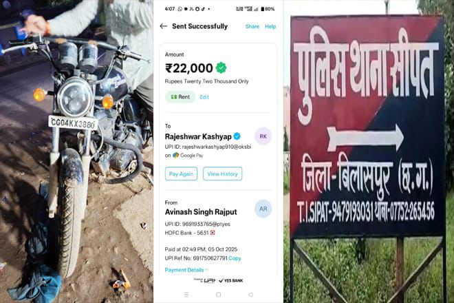 अविनाश ठाकुर के मुताबिक, रुपए देने के बाद थाना प्रभारी ने बताया कि उनके खिलाफ धारा 185 के तहत चालान किया गया है, जबकि उनके साथी रवि कश्यप के खिलाफ धारा 36(च) की कार्रवाई की गई।लेकिन, मामला यहीं खत्म नहीं हुआ। व्यापारी ने बताया कि उसी दिन रात करीब 10 बजे, सीपत के सुमित मेडिकल स्टोर के पास पुलिस ने उनकी बाइक को दोबारा जब्त कर लिया और थाने ले जाकर मोटर व्हीकल एक्ट की कार्रवाई बताई।व्यापारी ने अपने आवेदन में यह भी लिखा है कि पुलिसकर्मियों ने उनके साथ झूठे आरोप लगाकर दबाव बनाया और धन उगाही की। उनका आरोप है कि यह सब थाना प्रभारी गोपाल सतपथी और एएसआई सहेत्तर कुर्रे की मिलीभगत से किया गया।व्यापारी की गुहारअविनाश सिंह ठाकुर ने एसएसपी से मांग की है कि पूरे प्रकरण की निष्पक्ष जांच कराई जाए और दोषी पुलिसकर्मियों पर भ्रष्टाचार व ब्लैकमेलिंग के तहत कड़ी कार्रवाई की जाए। उन्होंने यह भी कहा कि अगर कार्रवाई नहीं हुई, तो वे मामले को उच्चाधिकारियों और मानवाधिकार आयोग तक ले जाएंगे।एसएसपी बोले — “जांच जारी है, दोषी नहीं बचेंगे”वरिष्ठ पुलिस अधीक्षक रजनेश सिंह ने इस प्रकरण की पुष्टि करते हुए बताया —“सीपत निवासी व्यापारी अविनाश ठाकुर से शिकायत प्राप्त हुई है। आवेदन के साथ ऑनलाइन भुगतान के ठोस सबूत संलग्न हैं। मामले की जांच प्रारंभ कर दी गई है, और दोषी पाए जाने वाले पुलिसकर्मियों के खिलाफ कड़ी departmental कार्रवाई की जाएगी।”
