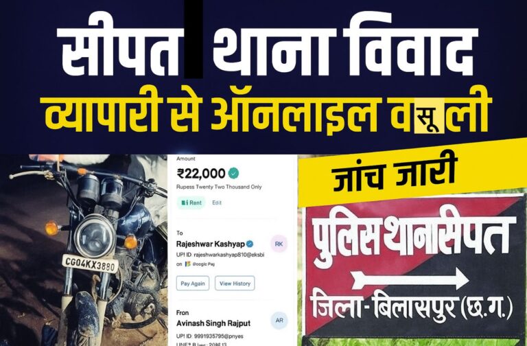 ग्राम सीपत निवासी अविनाश सिंह ठाकुर, जो नवाडीह चौक में किराना दुकान संचालित करते हैं, ने बताया कि 5 अक्टूबर 2025 (रविवार) को वे अपने साथी रवि कश्यप के साथ किसी व्यक्तिगत कार्य से सीपत थाने पहुंचे थे। वे अपनी बुलेट बाइक (क्रमांक CG 04 AX 3880) से थाना पहुंचे थे।थाने पहुंचने पर, थाना प्रभारी गोपाल सतपथी और एक आरक्षक उनके पास आए और कथित रूप से धारा 185 (नशे में वाहन चलाने) की कार्रवाई की धमकी देते हुए 50 हजार रुपए की मांग की। व्यापारी ने बताया कि पुलिस कार्रवाई के डर से उन्होंने 22 हजार रुपए का भुगतान थाना परिसर में ही मौजूद थाने के प्राइवेट कंप्यूटर ऑपरेटर राजेश्वर कश्यप के बैंक खाते में ऑनलाइन ट्रांसफर कर दिया।इस भुगतान का बैंक ट्रांजैक्शन सबूत (ऑनलाइन रसीद) व्यापारी ने अपनी शिकायत के साथ एसएसपी को सौंपा है।फिर भी नहीं मिली राहत